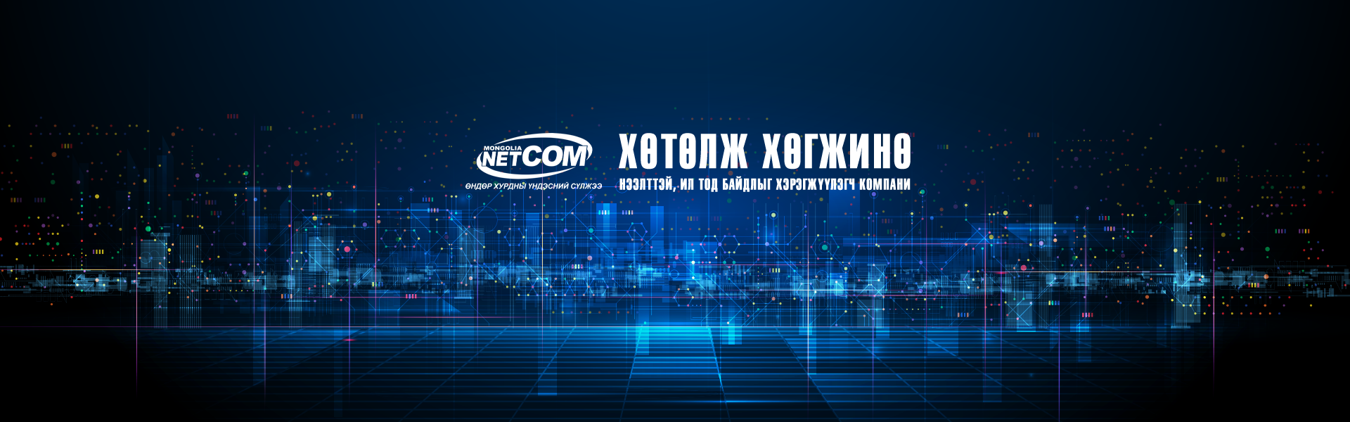 Мэдээлэл, Харилцаа Холбооны технологийн дэвшлийг монгол хүн бүрт дамжуулан хүргэж, улс орныхоо нийгэм, эдийн засгийн бүхий л салбарт тогтвортой хөгжлийг хангахад дэмжлэг үзүүлэх өндөр хурдны хамгийн хүртээмжтэй үндэсний сүлжээ болно.АЛСЫН ХАРАА: ХӨТӨЛЖ ХӨГЖИНӨ