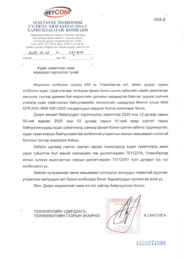 Сүлжээнд холбогдох зөвшөөрөл олгох